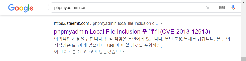 https://steemit.com/kr/@huti/phpmyadmin-local-file-inclusion-cve-2018-12613