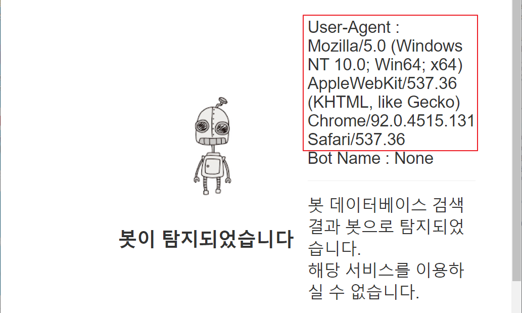 들어가면 봇이 탐지되었다며 접근이 안돼요